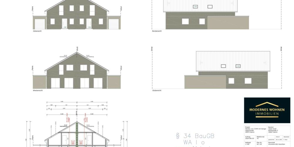 Bei diesem Projekt handelt es sich um zwei Doppelhaushälften ohne Kellergeschoss. Dieses ansprechende Projekt, dass durch eine gehobene Ausstattung besticht und eine repräsentative Außendarstellung abgibt, wird bis zum Sommer 2022 fertiggestellt. Das Projekt wird bezugsfertig übergeben!